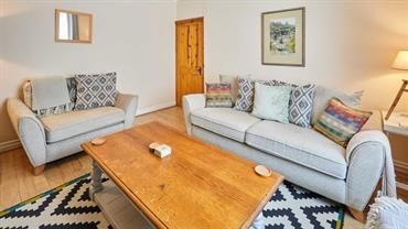 As you walk through the front door you will be greeted by a cosy living area which houses a seating area, coffee table and Smart TV.