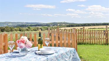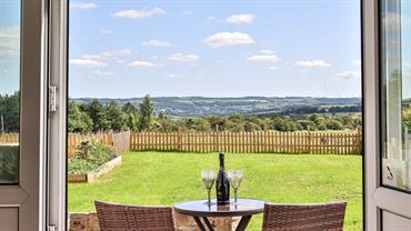 All on one level, with panoramic views over the countryside, guests will find Jasmine Cottage warm and welcoming. The open plan living, kitchen and dining area is light and spacious, and has windows looking out over the horses and sheep in the field opposite and the beautiful rolling countryside beyond