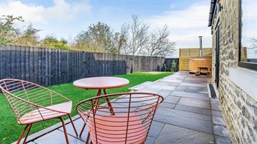 Outside there is a beautiful, flagged terrace, festooned with lights, where you’ll find the KIRAMI wood-fired hot tub. The lawned garden is completely private and secure for dogs. With dark skies in the evening, imagine relaxing in the steaming hot tub with a glass of fizz whilst stargazing. You might hear the local owls and curlews. The terrace is set with a bistro table and chairs to enjoy an al fresco supper.