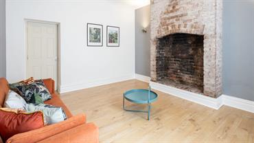 With a luxury, orange velvet sofa and a metal coffee table, the living room is the perfect spot to relax with your loved ones. Lay back here with a good book or simply just relax after a day at the seaside. Beautifully decorated, the living area is complete with exposed bricks, wall lamps and wooden flooring. Watch your favourite shows or stream your favourite apps from the 43” Smart TV provided.