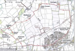Turn right and immediately, but carefully, cross the road. Follow the Lanchester Valley Way back to the starting point.