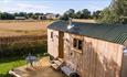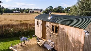 Set in the beautiful quiet countryside of the Tees Valley straddling County Durham and North Yorkshire lies a traditional-looking shepherds hut which blends seamlessly with the landscape. It has its own parking area at the rear and in front a delightful South-facing private garden with lawn area and decking. Here you can relax in the traditional deck chairs or dine al fresco taking in the views.
