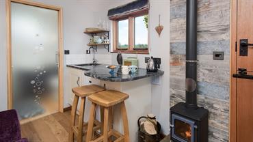 Stepping through the stable door you enter a surprisingly spacious interior which possesses all the essentials one would expect from a 5 Star quality cottage but encased in a cosy intimate space. A luxury two-seater sofa occupies pride of place where one can snuggle into in front of the Hobbit wood burning stove.