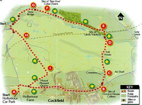 The walk starts from Hollymoor car park. From here turn left and proceed to the road junction. Turn right and head into Cockfield. A knight from Suffolk, Robert de Cockfield, a judge and sheriff representing the king in various parts of the north, decided to reclaim and settle in an ancient manor house and its estate. He decided to call it Beaurepayr – beautiful spot – but it soon became known by his own name, Cockfield.A. Head straight through Cockfield and turn left opposite St. Mary’s Church towards Cockfield Fell.
