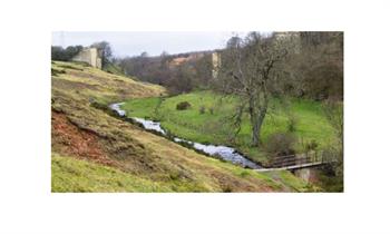 Follow the path as it bears left, leading down to a footbridge. Cross the River Gaunless, turn left and follow the river upstream on the course of the Haggerleases branch of the Stockton and Darlington Railway.