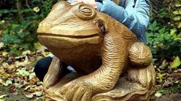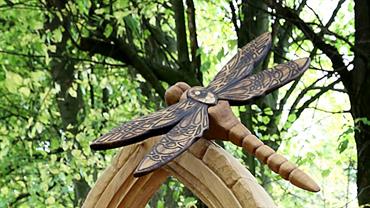 Six wetland-inspired oak pieces, designed and carved by north east artists Lee and Jill Brewster. The artworks, depicting a dragonfly, frog and other wetland animals, were commissioned by the Discover Brightwater Landscape Project team.