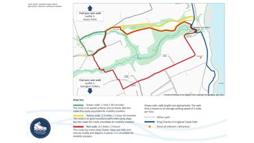 The longer walks connect to the King Charles III England Coast Path. This path is being developed and will soon go all the way around the coast of England. The section in Durham is fully open and provides wonderful views of the cliffs, beaches and coastal wildlife. Catch a glimpse of the sea through the viaduct arches, smell the intense wild garlic in spring and enjoy the wildflower meadows in summer. The yellow route may be muddy in places. The red route has some steep slopes, steps and stiles and may be muddy. Take care on the coast, follow local signs and keep back from the cliff edge.