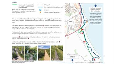 The walk at Nose’s Point is accessible for most people, it has a firm surface and gentle gradients, and no steps, stiles or barriers. It offers fabulous views of the coast.