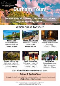 - mauireKilkenny, IrelandTrip Type:Friends getawayI.5 hour walking tourMonday, 24th April 2023We took a day trip to Durham from York and were delighted to have spent 1.5 hours in Peter's company as he filled us in on Durham's past and indeed present. Peter was knowledgeable, very informative... Read full review
