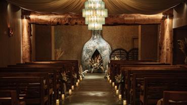 The Runa Farm Chapel is the hidden gem of the farm – entirely unique and unlike any other north east wedding ceremony venue – with its ornate tented ceiling, smooth polished stone walls and shimmering lanterns delivering an ethereal and romantic experience. For the ultimate dress reveal, brides access the Chapel through a secret entrance making their way down the statement staircase, leading directly to the aisle.